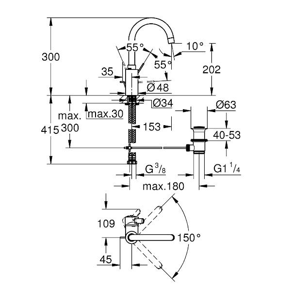Armatura GROHE EUROSMART COSMOPOLITAN - za umivalnik, flamingo