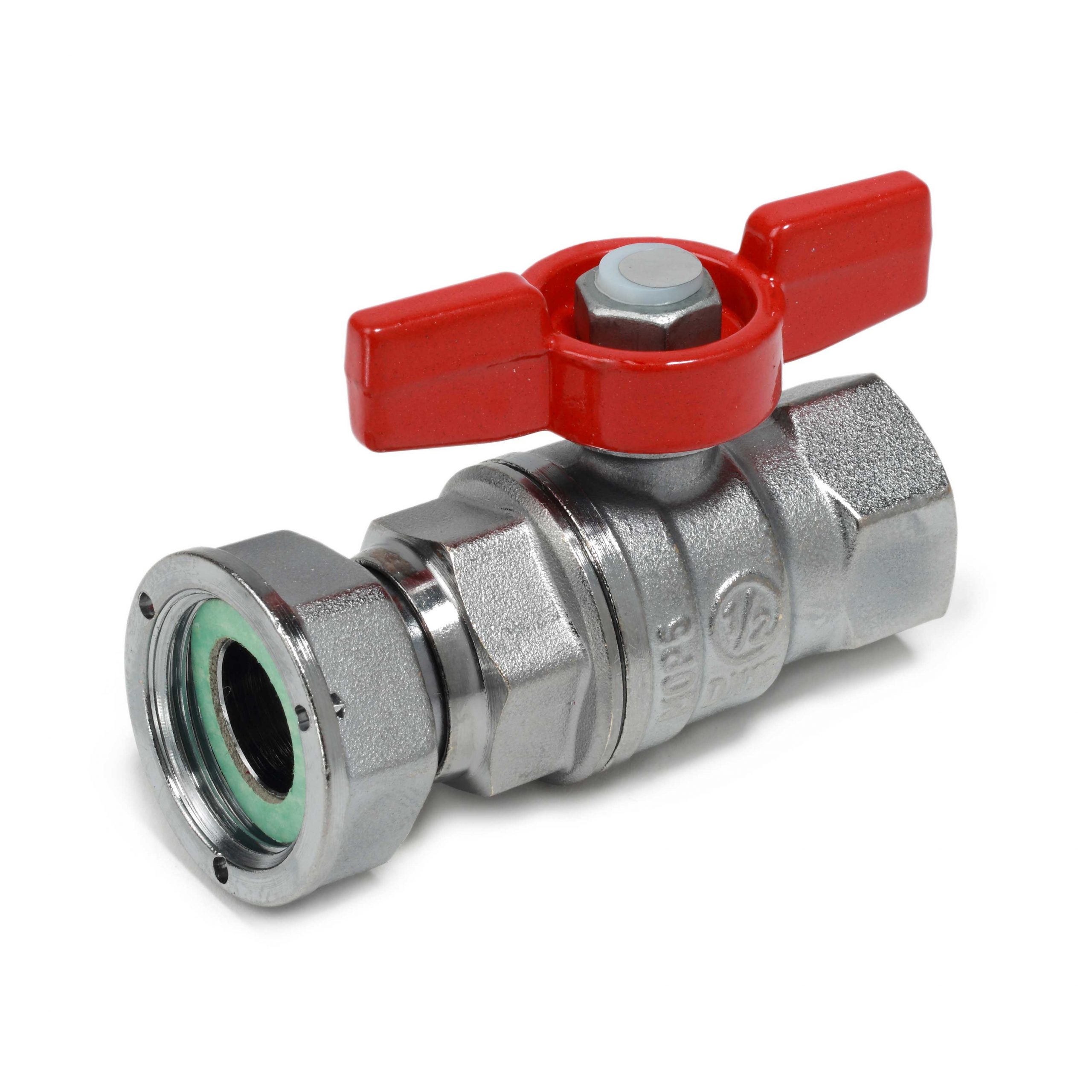 Krogelna pipa Giacomini R752 z notranjim navojem in z nastavljivim priklopom (nastavitev dolžine ventila: 8 mm).