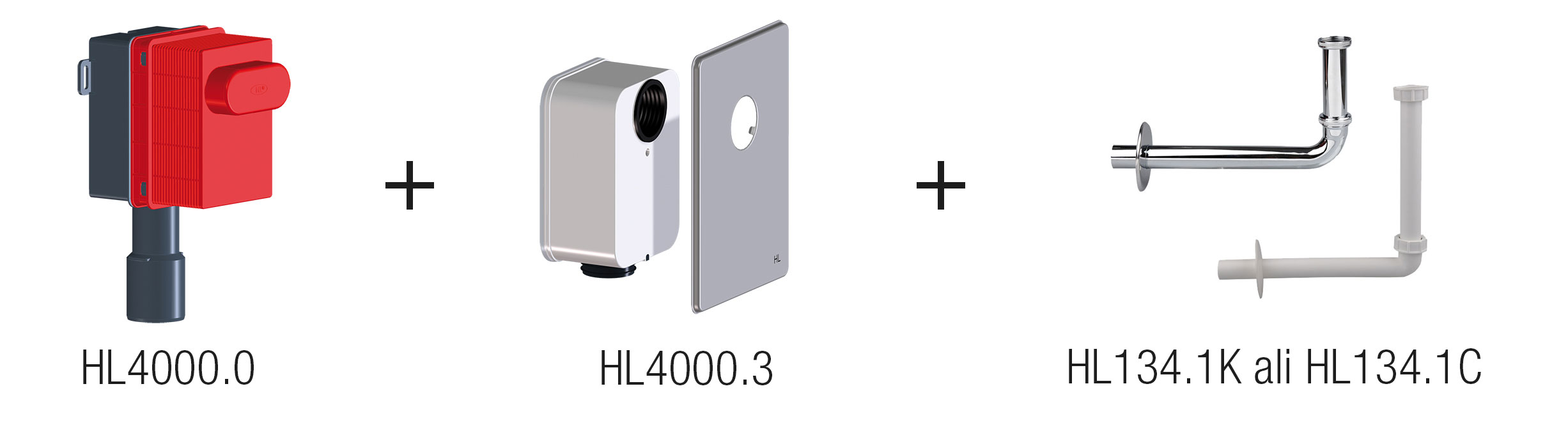 Isto ohišje za grobo montažo lahko uporabite tudi kot podometni sifon za umivalnik. Izvedete ga lahko preprosto z zato ustrezno sifonsko kaseto HL4000.3, ter priključnima garniturama HL134.K (bela, plastična) ali HL134.1C (kromirana).