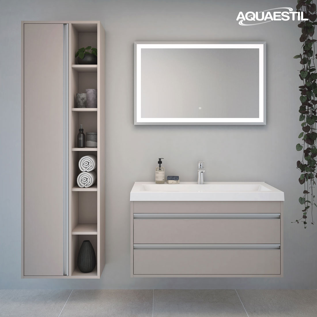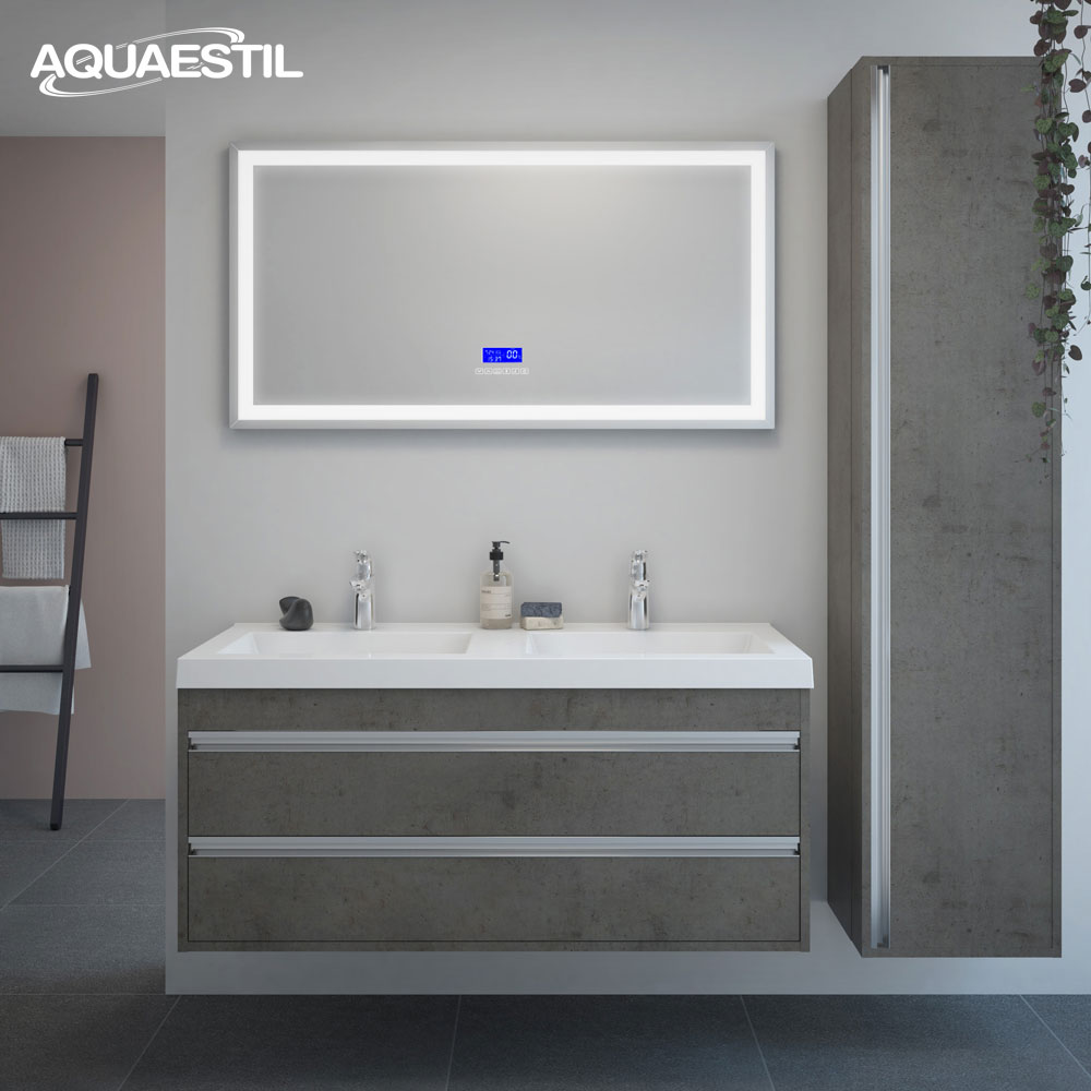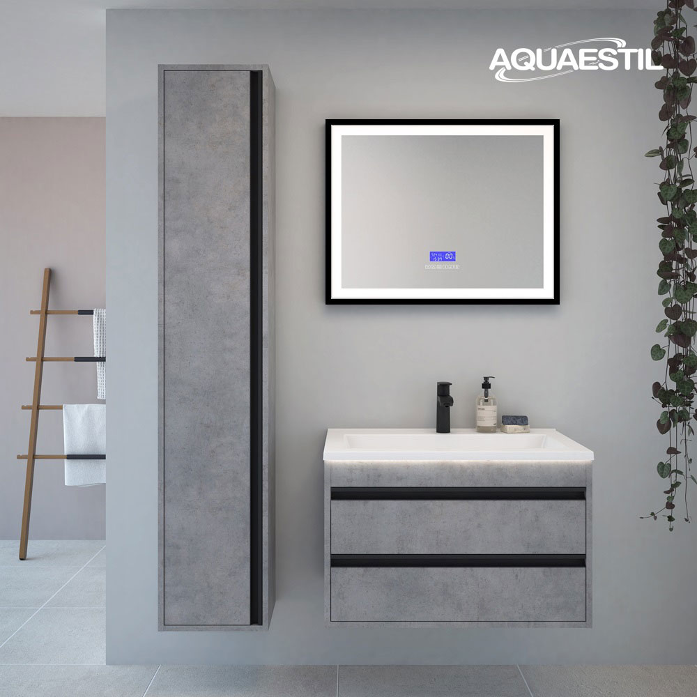 Večina modelov kopalniškega pohištva Aquaestil je izdelana iz oplemenitene iverke z robovi, kantiranimi s kakovostnim ABC-trakom in dostopna v številnih barvnih različicah ter dimenzijah. Elementi našega pohištva so opremljeni z naprednimi lastnostmi, kot sta „mehko zapiranje“ in „odpiranje ob dotiku“, nekatera ogledala pa imajo možnost prižiga na dotik ter vgrajen sistem proti zameglitvi.