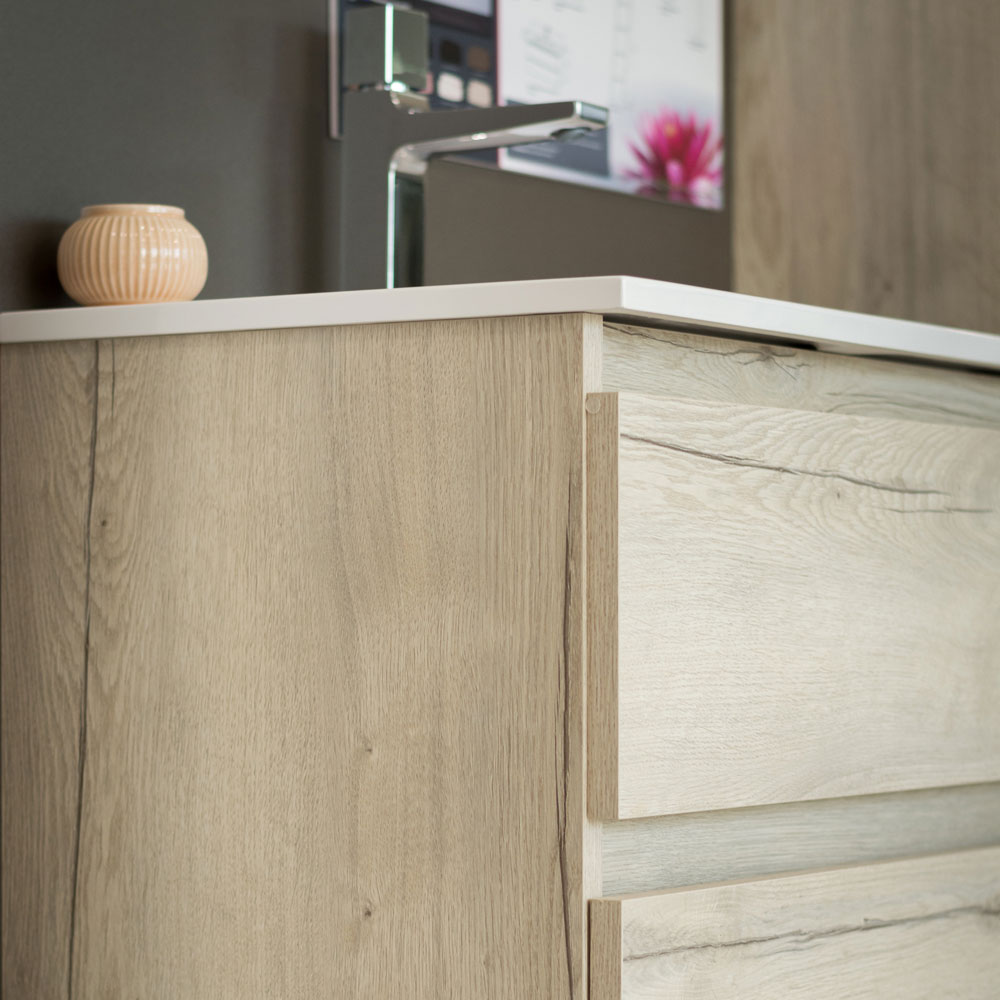 Večina modelov kopalniškega pohištva Aquaestil je izdelana iz oplemenitene iverke z robovi, kantiranimi s kakovostnim ABC-trakom in dostopna v številnih barvnih različicah ter dimenzijah. Elementi našega pohištva so opremljeni z naprednimi lastnostmi, kot sta „mehko zapiranje“ in „odpiranje ob dotiku“, nekatera ogledala pa imajo možnost prižiga na dotik ter vgrajen sistem proti zameglitvi.