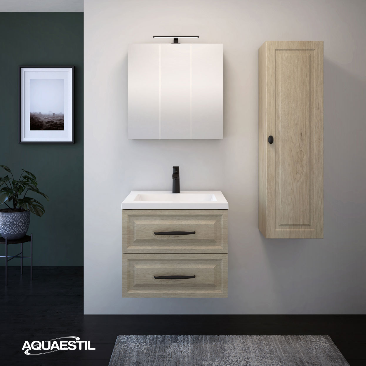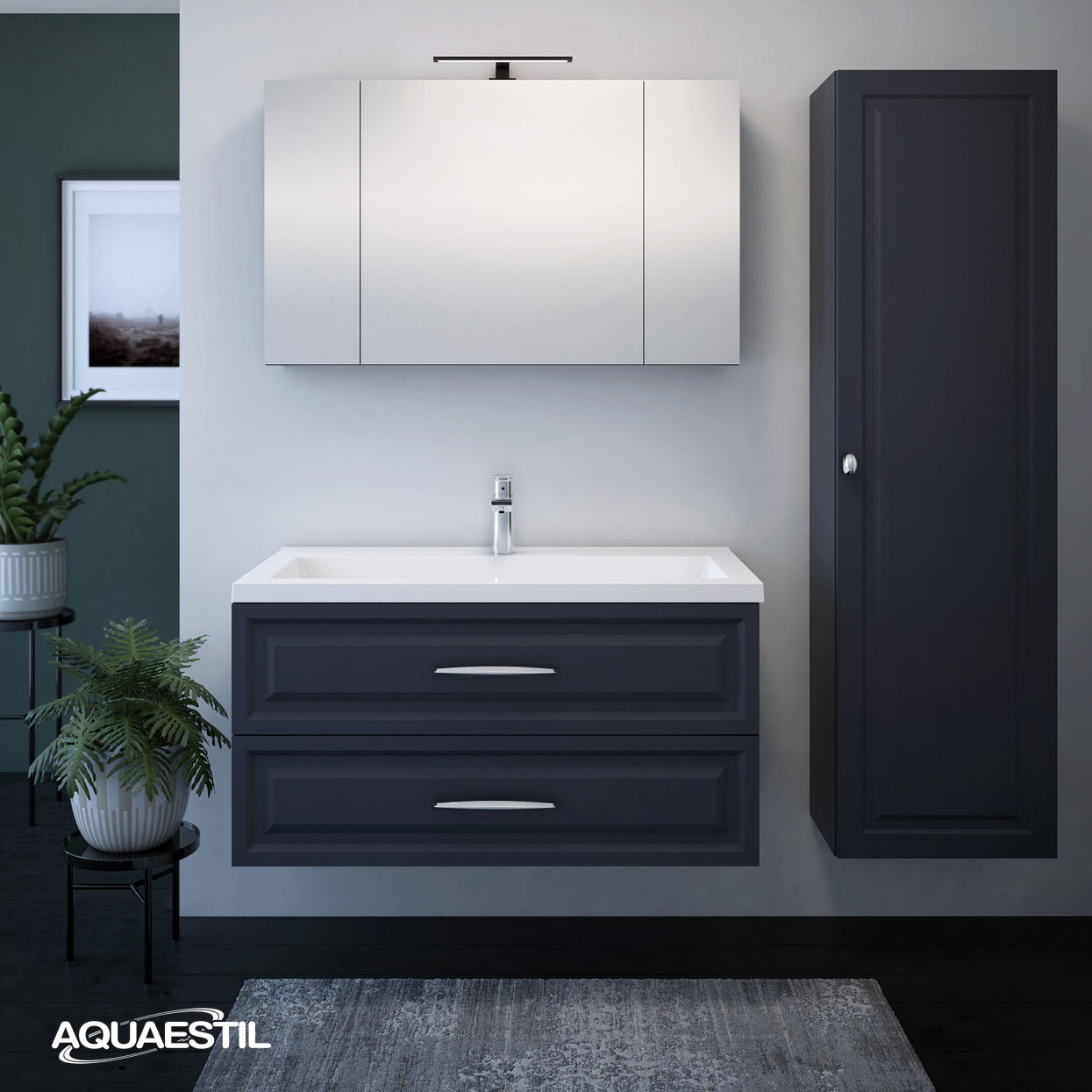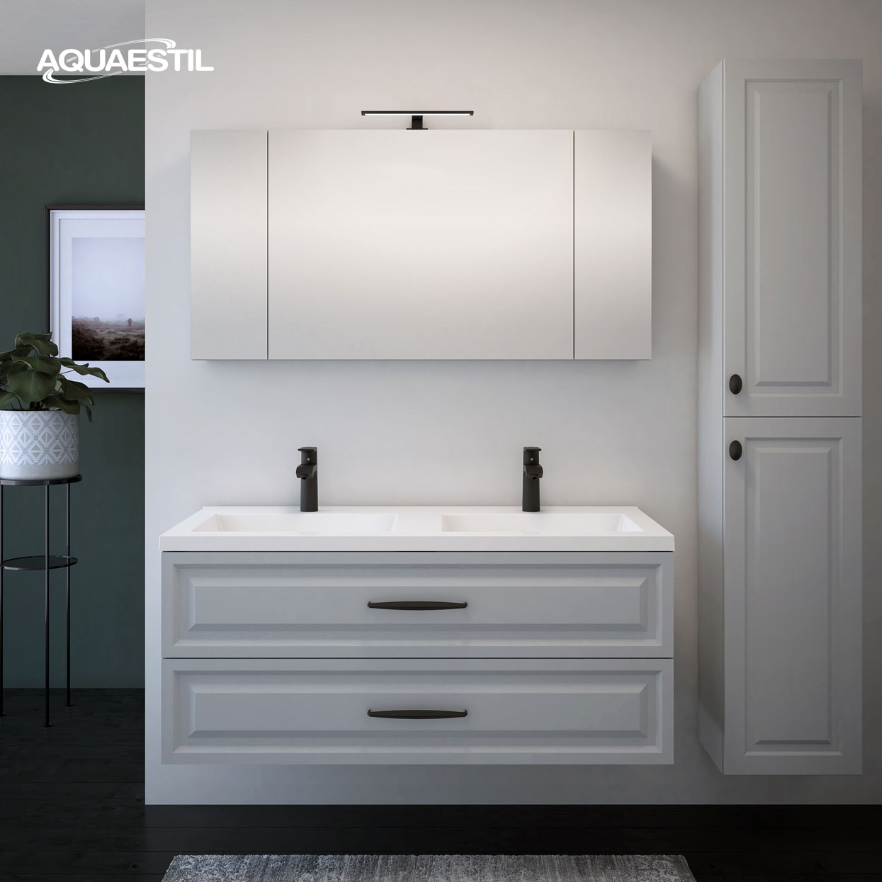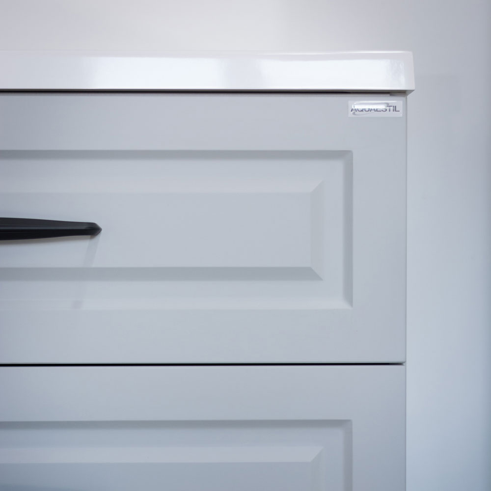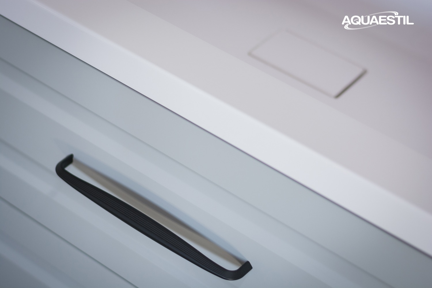Večina modelov kopalniškega pohištva Aquaestil je izdelana iz oplemenitene iverke z robovi, kantiranimi s kakovostnim ABC-trakom in dostopna v številnih barvnih različicah ter dimenzijah. Elementi našega pohištva so opremljeni z naprednimi lastnostmi, kot sta „mehko zapiranje“ in „odpiranje ob dotiku“, nekatera ogledala pa imajo možnost prižiga na dotik ter vgrajen sistem proti zameglitvi.