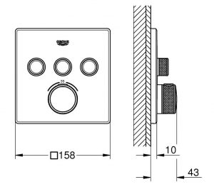 Armatura GROHE GROHTHERM SMARTCONTROL - pokrivna plošča za smartbox, 3 izhodi, kvadratna