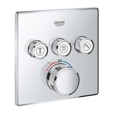 Termostatska pokrivna plošča Grohe Grohtherm Smartcontrol s tremi izhodi.