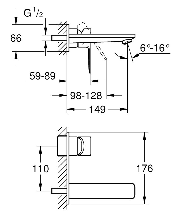 Armatura GROHE LINEARE – za umivalnik, stenska, velikost M