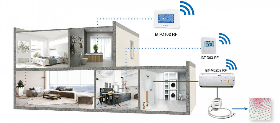 Brezžični digitalni sobni termostat z osvetljenim LCD zaslonom je zasnovan za krmiljenje različnih vrst ogrevalnih sistemov. Nadzor temperature temelji na notranjih senzorjih. Zunanji senzor je mogoče priključiti brez dodatnega zunanjega napajanja.