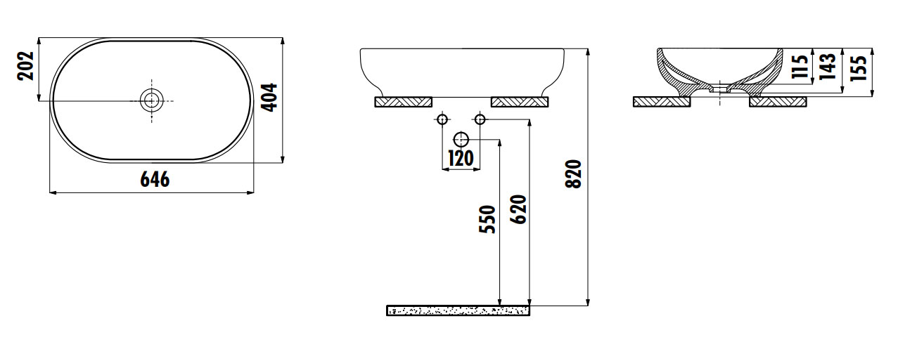 Keramika Creavit - Nadgradni umivalnik 646x404 mm, ovalni