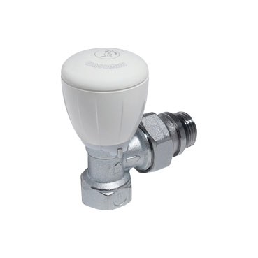 Precizen kotni termostatski ventil za priklop na jeklene, PEX ali alumplast cevi.