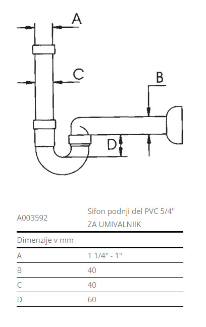 Sifon za umivalnik, spodnji del, PVC, 5/4″