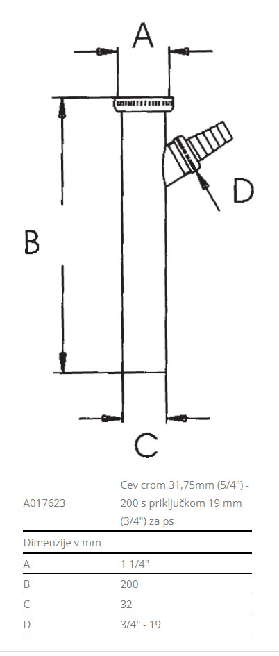 Cev kromirana 31,75 mm (5/4″) s priključkom 19 mm (3/4″) za ps.