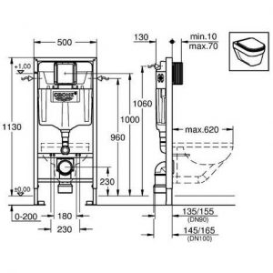 Podometni splakovalnik za WC školjko, primeren za montažo v ali pred steno na višini 1,13m. Omogoča hitro in varno inštalacijo najsodobnejših visečih toaletnih školjk.