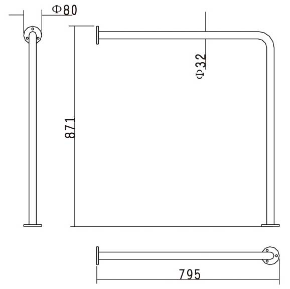 Varnostno držalo Astra – kotna stena-tla, 795 x 871 mm