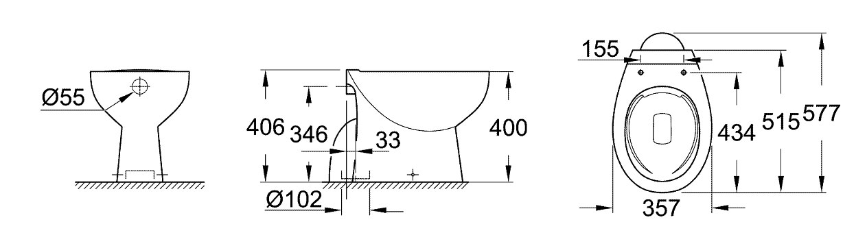 WC školjka Grohe BAU, talna, iztok v tla, rimless